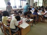 3年生と4年生が大塚先生をお招きして、書写で毛筆を行いました。3年生は初めての毛筆なので、姿勢や筆の持ち方など丁寧に教えていただきました。