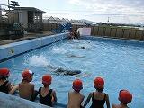 1~4年生でプールに入りました。1年生は初めてのプールにドキドキでしたが、とても楽しんでいました。3・4年生は慣れているので、泳ぎの練習をしていました。