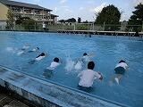 5・6年生が最後のプールの授業で、着衣水泳をしました。服を着たまま水の中に入ったりペットボトルを使って浮いたりと様々な体験をしました。事故やけがなく水泳活動が終わりよかったです。