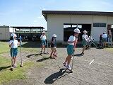10月14日のゲートボール大会に向けて、今日から練習が始まりました。ゲートボール指導ボランティアの方をお招きして、打ち方やルールなどを指導していただきました。
