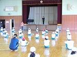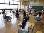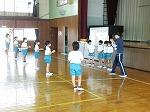 今日の表現運動では「エビカニビクス」で体を動かしました。子どもたちは幼稚園や保育園でおどったことのある子が多く、思い出しながら音楽に合わせて運動しました。