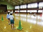 今日の表現運動は音楽に合わせて、学年ごとに難易度の違うステップや動きにチャレンジしました。高学年用のステップはキックやターンなどが少し難しく、慣れるまで先生方も苦戦していました。