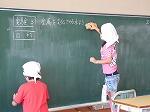 休み明けはどうしてもホコリがたまりがち。全員で隅々まで一生懸命に清掃します。黒板は上までとどかないので椅子を使ってやっています。一人ひとりが工夫して取り組んでいます。