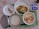 豚キムチ丼・ほうれん草と大根のナムル・豆腐と椎茸のスープ・牛乳