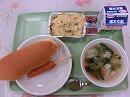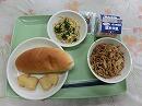 コッペパン・いちごージャム・焼きそば・いかナゲット・青梗菜の中華和え・牛乳