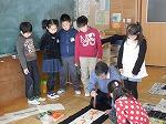 今日は習字の達人「大塚幸一」先生を招いて、2校時に3・4年生、3校時に5・6年生に習字(書き初め)の指導をしていただきました。一人1枚手本をその場で書いて頂き、それを見本に書き上げました。実際に書いたものを直してもらったり、アドバイスをしてもらったりとアッという間に時間が過ぎていきました。