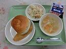 アップルパン・鶏肉のレモンソースがけ・野菜サラダ・ジャガイモとベーコンのスープ・セレクトデザート・牛乳