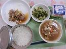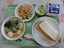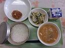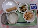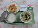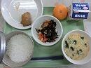 ごはん・焼き鳥風煮・ほうれん草ともやしの磯香和え・大根と油揚げの味噌汁・牛乳