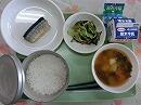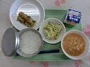 ごはん・もろのねぎ味噌焼き・切り干し大根の煮つけ・かき玉汁・牛乳