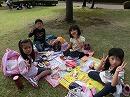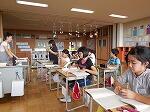 今日のEXPOタイムは、今海外で密かなブームの「ルームバンド」を作りました。色とりどりのゴムを用いて作ります。子どもたちは、器用でアッという間に作ってしまいました。米国発の「ルームバンド」で世界との距離を縮めました。