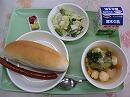 ホットドック・キャベツとアスパラガスのサラダ・えびボールスープ・牛乳