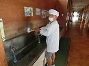 まずは、生活の元「火」を作りました。まいぎり式という火起こしの道具を使って火を起こしました。「昔の人は大変だったんだ。」との感想がありました。火を大切にしながら、次はお昼の準備です。さてお昼は?