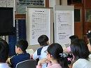 学年が上がるにつれて低下する視力。児童・保護者,身近な健康問題として真剣な眼差しで講話を聞きました。