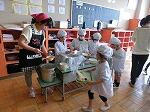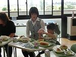 『むし歯ゼロ教室』のあと,1年生・保護者の給食試食会の風景。