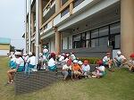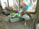 今日は天候に恵まれ、充実した練習ができました。子どもたちの健康に留意し、休憩時間もたっぷりとって活動しています。休憩時間には、うさぎにえさを与えたところ、多くの児童が集まってきました。