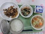 ごはん・豚肉のスタミナ焼き・キャベツの昆布漬け・生揚げの味噌汁・牛乳