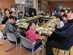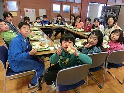 3月6日(木)に、ふれあい広場で、6年生とのお別れ全校給食を行いました。なかよし班で6年生と給食を食べるのは、これが最後です。どの班も楽しそうに食べていました。