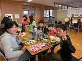 10月19日(土)の自由参観日(オープンスクール)に、6つの地区別に親子ふれあい給食を行いました。児童・保護者等合わせて約90名の参加者になりました。中学生も来てくれました。おうちの人が作ってくれたお弁当はおいしかったです。