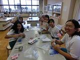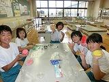 4~6年生の手作りクラブで,スライムを作りました。材料は,ホウ砂,せんたくのり,絵の具です。みんなで手触りを楽しみました。レンジにかけると,スライムボールになり,はずむのも魅力的でした。