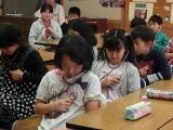 10月19日(土)の自由参観日(オープンスクール)で、4年生(9名)と5年生(8名)を対象に、いのちの授業を行いました。保護者や地域の方々15名も参観してくださいました。講師は日野原重明先生の「いのちの授業」の普及啓発活動をしている、エフ・フィールドの柏崎昇一さんと阿部澄子さん。「十歳のきみへ いのちの授業」のDVDを視聴した後、聴診器を使って自分や友だちの心臓の音を聞きました。講師の先生から日野原先生のメッセージを聞き、いのちの大切さについて考えました。