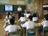 7/11(木)5校時 理科の学習の一環として、宇都宮地方気象台の出前講座を開催しました。気象台より2名の方を来校していただき、まず、気象台の説明をお聞きしました。次に、実際のアメダス測器を使って、天気予報などがどのように作られているのか教えていただきました。