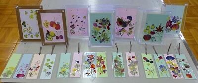 押し花でしおりと絵はがきをつくりました