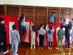 4、5年生が協力して絨毯や紅白幕の取り付けを行いました。