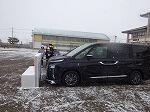 雪が降る中でしたが、ブレーキの安全装置の体験や水素自動車の試乗体験を行いました。