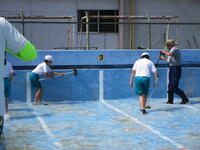 夏の到来を思わせるほどの強い日差しが照りつける、絶好のプール掃除日和でした。