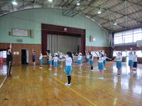 今朝は、小雨でしたので、体育館で応援団の練習を行いました。