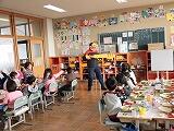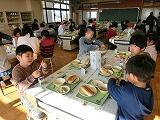 今日まで校内給食週間でした。栄養士の先生に来ていただき、1・2年生と5年生が食に関する指導を行いました。栄養のバランスやマナーについて詳しく学ぶことができました。