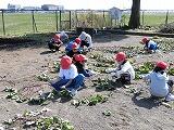 2年生がさつまいも堀りをしました。ツルと葉っぱを取ってから、土を掘ってさつまいもを探しました。掘った後は、ツルを丸めてリースも作りました。