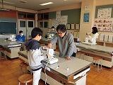 6年生が家庭科の授業でナップザックを作っています。今日はミシンを使って縫ったり、手縫いでしつけをしたりしていました。慣れないミシンですが、一生懸命取り組んでいました。