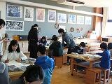 東陽中学校の美術の先生をお招きして、4~6年生が合同図工を行いました。これから版画が始まるので、版画の下絵を描きました。どこを大きく画けばいいのかなど工夫をたくさん教えていただきました。