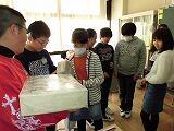 3年生が理科で電気の実験をしています。豆電球を使って、電気を通す物通さない物などを調べました。