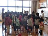 今日の児童朝会は6年生が中心になって、「じゃんけん列車」をしました。1年生が先頭で列車を作り、じゃんけんをして負けると後ろにつながります。最初のチャンピオンになった児童は大喜びでした。