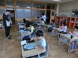 3年生と4年生が大塚先生をお招きして、書写で毛筆を行いました。3年生は初めての毛筆なので、姿勢や筆の持ち方など丁寧に教えていただきました。