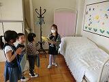 地震と火事を想定した避難訓練を行いました。いつ起こるかわからない災害に備えて真剣に取り組みました。