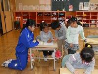 東陽中から、2年生(本校の卒業生)3名が、職場体験学習で来てくれています。子どもたちは授業で勉強を教えてもらったり、昼休みに一緒に遊んだり、とても楽しく過ごしています。