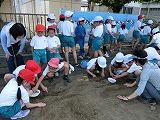 今日は緑を守り隊で、学校の西側のグリーンベルトに綿の種を植えました。指で穴を開けて、一粒ずつ丁寧に植えていました。綿の収穫が楽しみです。