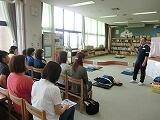 運動会やプールを前に、職員と保護者が参加して心肺蘇生法研修を行いました。胸骨圧迫の方法とAEDの使い方について学びました。万が一の時には冷静に対応できるようにしたいです。