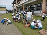 今日はマリーゴールドとホウセンカを植えました。細くて小さいマリーゴールドの種を無くさないようにしながら、1・2年生も上手に植えることができました。