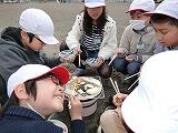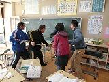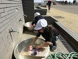 3年生が社会で昔の生活の学習をしています。今日は実際に洗濯板と七輪を使ってみました。洗濯板ではたらいに水をはり靴下を洗いました。七輪では炭で火をおこして、おもちを焼いて食べました。いい経験ができたようです。