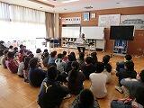 田村駐在所の平野さんとスクールサポーターの船渡川さんにお越しいただき、不審者訓練を行いました。3年教室に不審者が入ったことを想定し、避難の仕方や先生方の対応方法を確認しました。その後、「いかのおすし」や「ひまわり」に関するお話を聞きました。