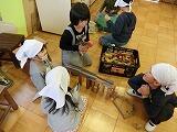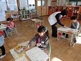 6年生が下学年のクラスを回り一緒に給食を食べています。