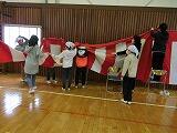 今日は体育館に紅白幕を張りました。隙間ができないように気をつけながら、4・5年生で協力して無事張ることができました。