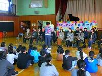 この日、この一年間でお世話になったみなさんをお呼びして、「ボランティア感謝の会」を行いました。約30名の方がご出席いただき、6年生代表児童のお礼の言葉、自己紹介ジャンケンゲーム(負けると肩たたき)、国庁太鼓披露、スマイルアゲインの歌唱、最後に鉢花と記念写真付きのお礼の手紙のプレゼントがありました。お帰りの際には、みなさん「きょうはありがとう、感激した~」「楽しいのに、涙が出てきた!」などと感想をいただきました。子どもたちの思いがボランティアのみなさんに伝わったようです。みなさんに育てていただいたお陰です!ありがとうございました!これからもよろしくお願いいたします!