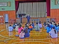 きょう、避難訓練があり、スクールサポーターの方、駐在所の警察官にご指導いただき、不審者対策の訓練を行いました。みんな真剣に取り組んで、約束を守って避難することができました。