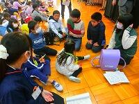 この日、南部サロン(国府地区地域包括支援センター)のご協力をいただいて、1,2年生が生活科で「昔遊び」を教わりました。けん玉、お手玉、ベーゴマ、あやとり、おはじき、竹馬、竹とんぼの7種類を教えていただきました。15名の地域の方に手を取り足を取りとていねいにいっしょに遊んでいただきました。地域の方も、子どもたちもたくさんの「たのしかった~~!」という感想が出ました!天気にも恵まれ、思い出にもなった素敵な時間になりましたね。