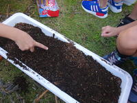 コミスク委員の皆さんの協力もいただきながら、なかよし班ごとに、土を入れ、種を取り、種をまきました。